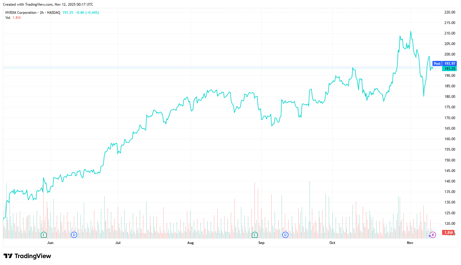 NVIDIA Corporation, a computing infrastructure company, provides graphics and compute and networking solutions in the United States, Singapore, Taiwan, China, Hong Kong, and internationally. The Compute & Networking segment includes its Data Centre accelerated computing platforms and artificial intelligence solutions and software; networking; automotive platforms and autonomous and electric vehicle solutions; Jetson for robotics and other embedded platforms; and DGX Cloud computing services. The Graphics segment offers GeForce GPUs for gaming and PCs, the GeForce NOW game streaming service and related infrastructure, and solutions for gaming platforms; Quadro/NVIDIA RTX GPUs for enterprise workstation graphics; virtual GPU or vGPU software for cloud-based visual and virtual computing; automotive platforms for infotainment systems; and Omniverse software for building and operating industrial AI and digital twin applications. It also customized agentic solutions designed in collaboration with NVIDIA to accelerate enterprise AI adoption. The company's products are used in gaming, professional visualization, data center, and automotive markets. It sells its products to original equipment manufacturers, original device manufacturers, system integrators and distributors, independent software vendors, cloud service providers, consumer internet companies, add-in board manufacturers, distributors, automotive manufacturers and tier-1 automotive suppliers, and other ecosystem participants. NVIDIA Corporation was incorporated in 1993 and is headquartered in Santa Clara, California.